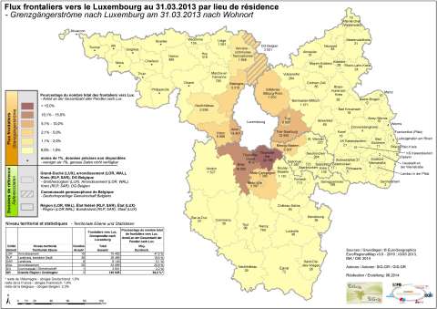 La carte « Lignes de bus transfrontalières (09/2015) aux frontières intérieures de la Grande Région » illustre les lignes de bus transfrontalières entre le Grand-Duché de Luxembourg, la Lorraine, la Rhénanie-Palatinat, la Sarre ainsi que la Wallonie en septembre 2015.